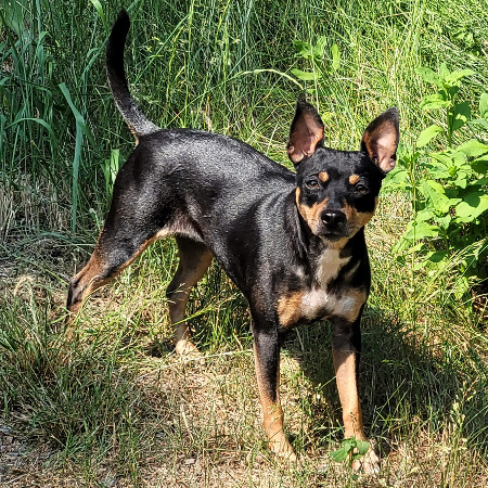 väri: musta-tan valkoisin merkein, karvallinen